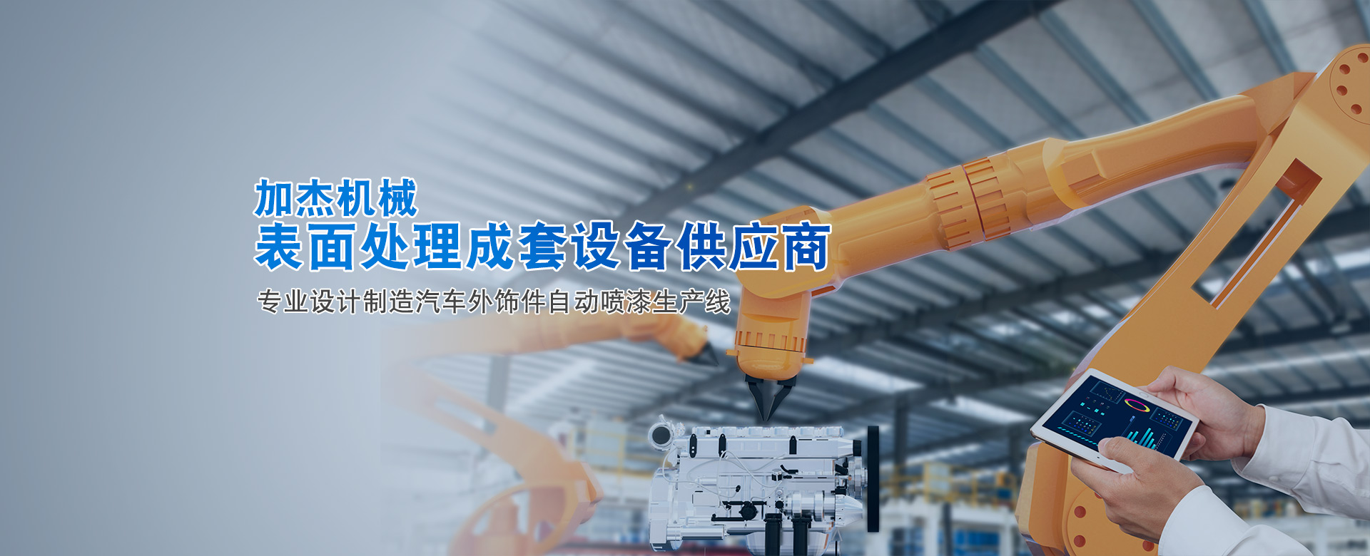 加杰智能裝備(廣東)有限公司是廣州市加杰機械設(shè)備有限公司的全資子公司,加杰成立于2007年。是一家專業(yè)于表面處理行業(yè)智能化涂裝設(shè)備的研發(fā)、設(shè)計、制造、安裝與售后為一體的綜合型企業(yè),專業(yè)于塑膠、金屬部件的噴漆、電泳、噴粉等成套自動涂裝線交鑰匙工程。 公司在廣州花都和廣清產(chǎn)業(yè)園均有自建研發(fā)及生產(chǎn)基地,占地面積六萬余㎡,旗下有加杰智能、川捷智能、漢潔科技、泰國加杰四家子公司。公司同華南理工、廣工、北理工等知名大學(xué)院校展開深度合作,并積極展開自主創(chuàng)新和...